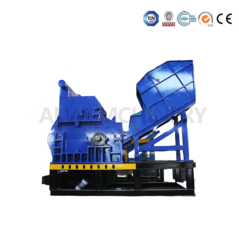 Metal crusher, also known as metal crusher, is a machine for crushing waste metal materials, mainly composed of crusher blade group, bearing box, box bracket, feeding system, power system, electrical control system, etc., through the supporting conveyor, host, unloader, sorting machine to form a complete production line. Metal crusher can deal with various types of metal waste, including cans, paint buckets, waste household appliances, bicycles, auto parts, waste metal furniture, cable and wire, metal pressing block, aluminum profiles, iron sheet, copper products, etc., can remove metal magazines, separate and purify different broken materials, can also choose the appropriate crushing mode according to the nature of the material, Control the size of the broken material to meet different needs.